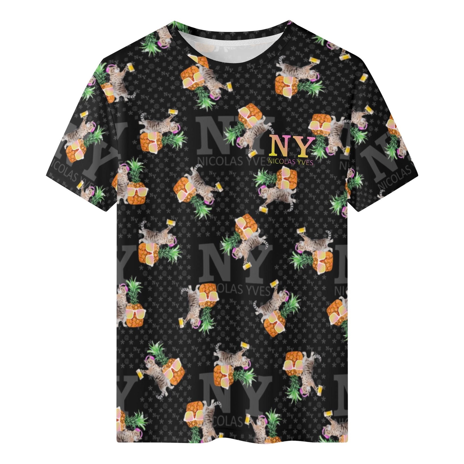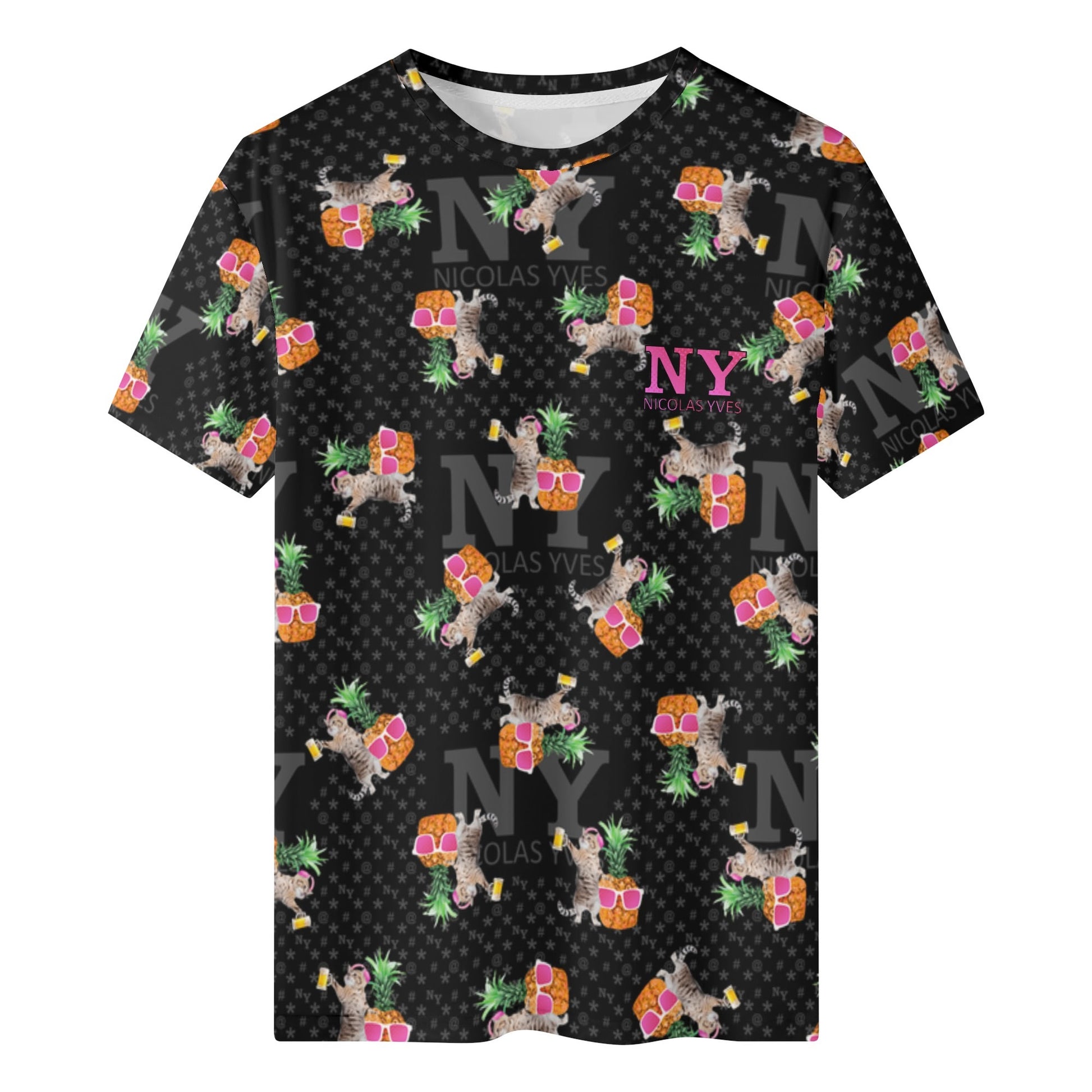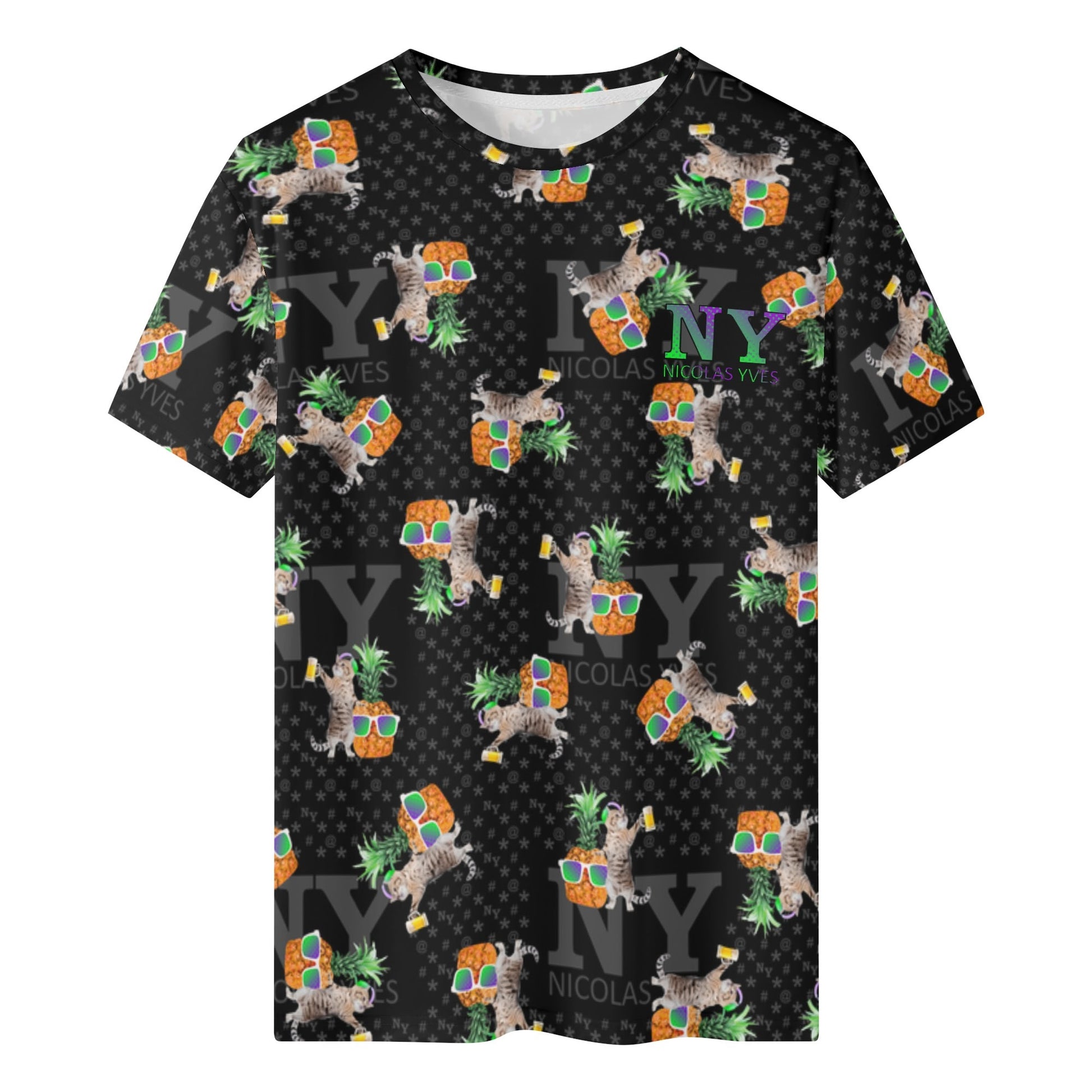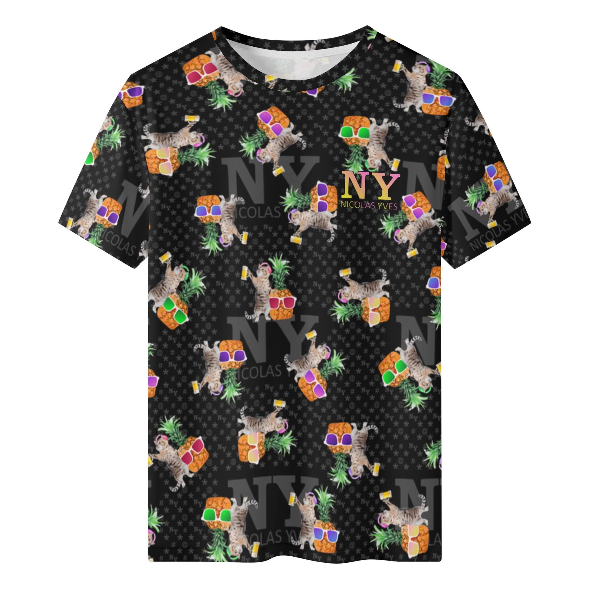Même si tu ne fais pas la fête tous les jours, avec le T-shirt NY de Nicolas Yves™, tu sais que tu resteras toujours en mode fiesta délirante avec tes chats et tes ananas !
