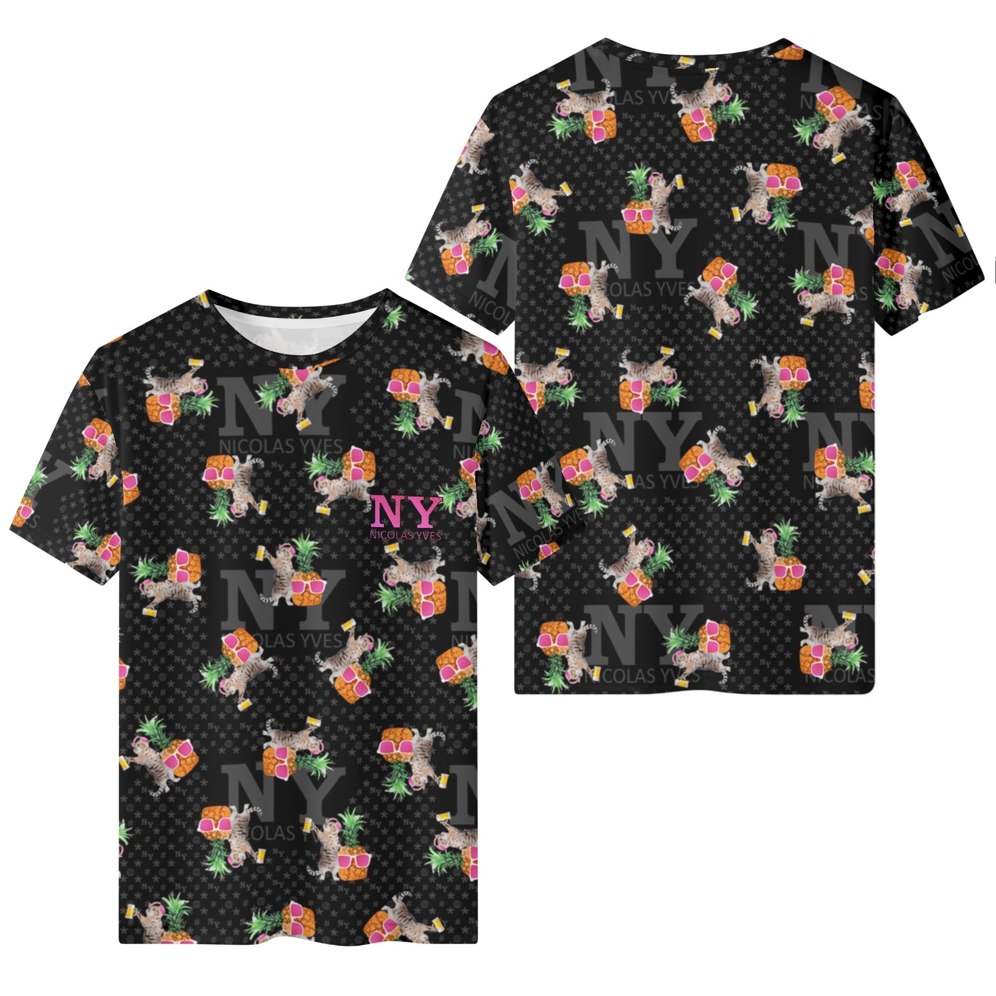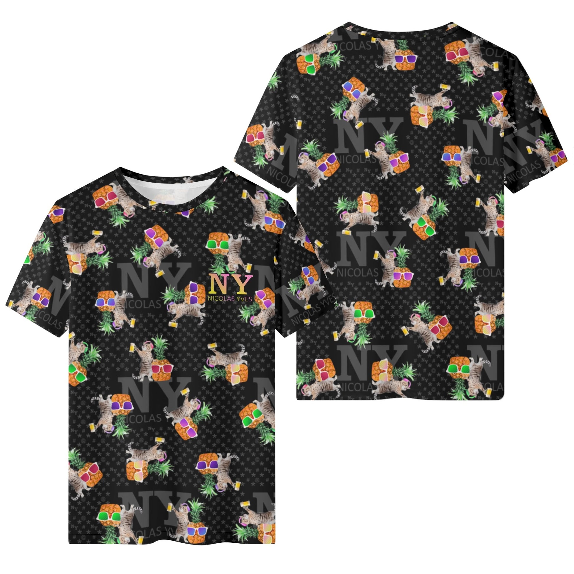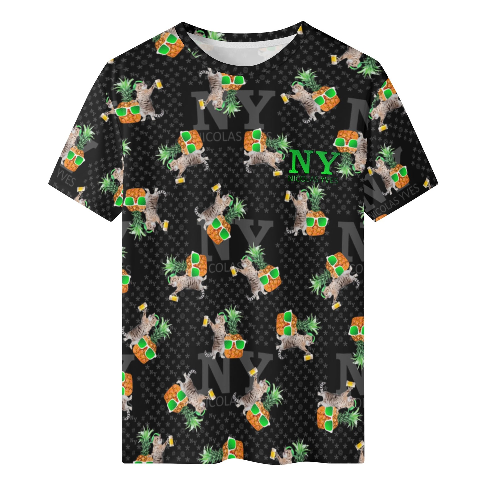 Même si tu ne fais pas la fête tous les jours, avec le T-shirt NY de Nicolas Yves™, tu sais que tu resteras toujours en mode fiesta délirante avec tes chats et tes ananas !