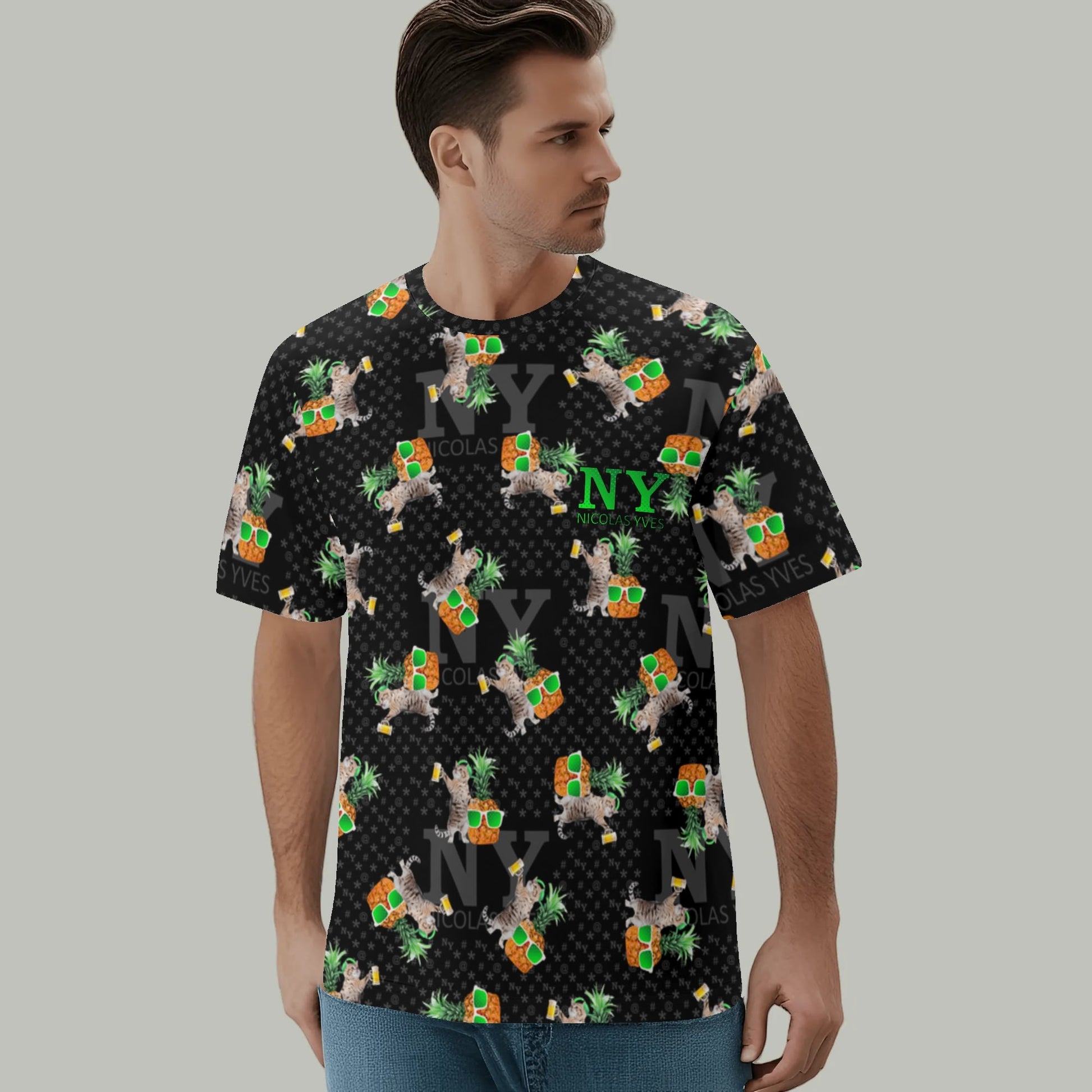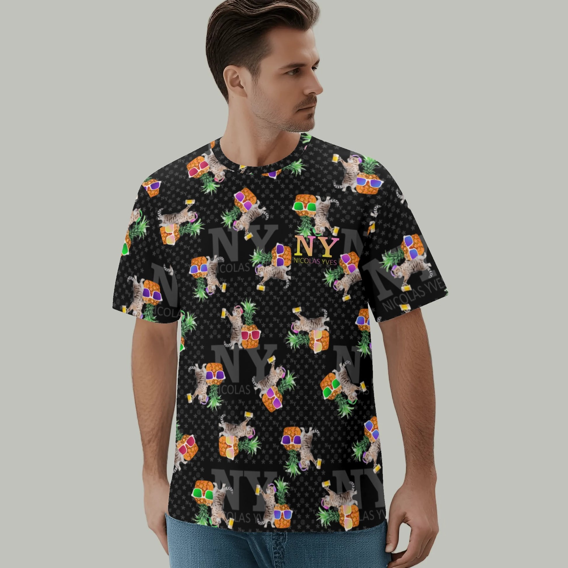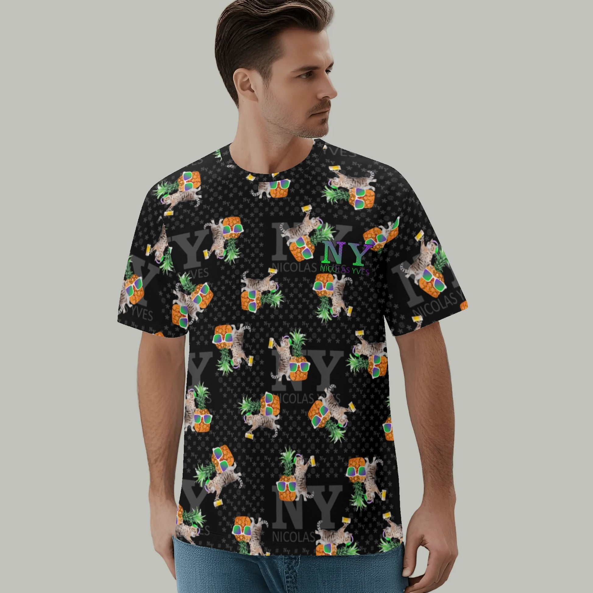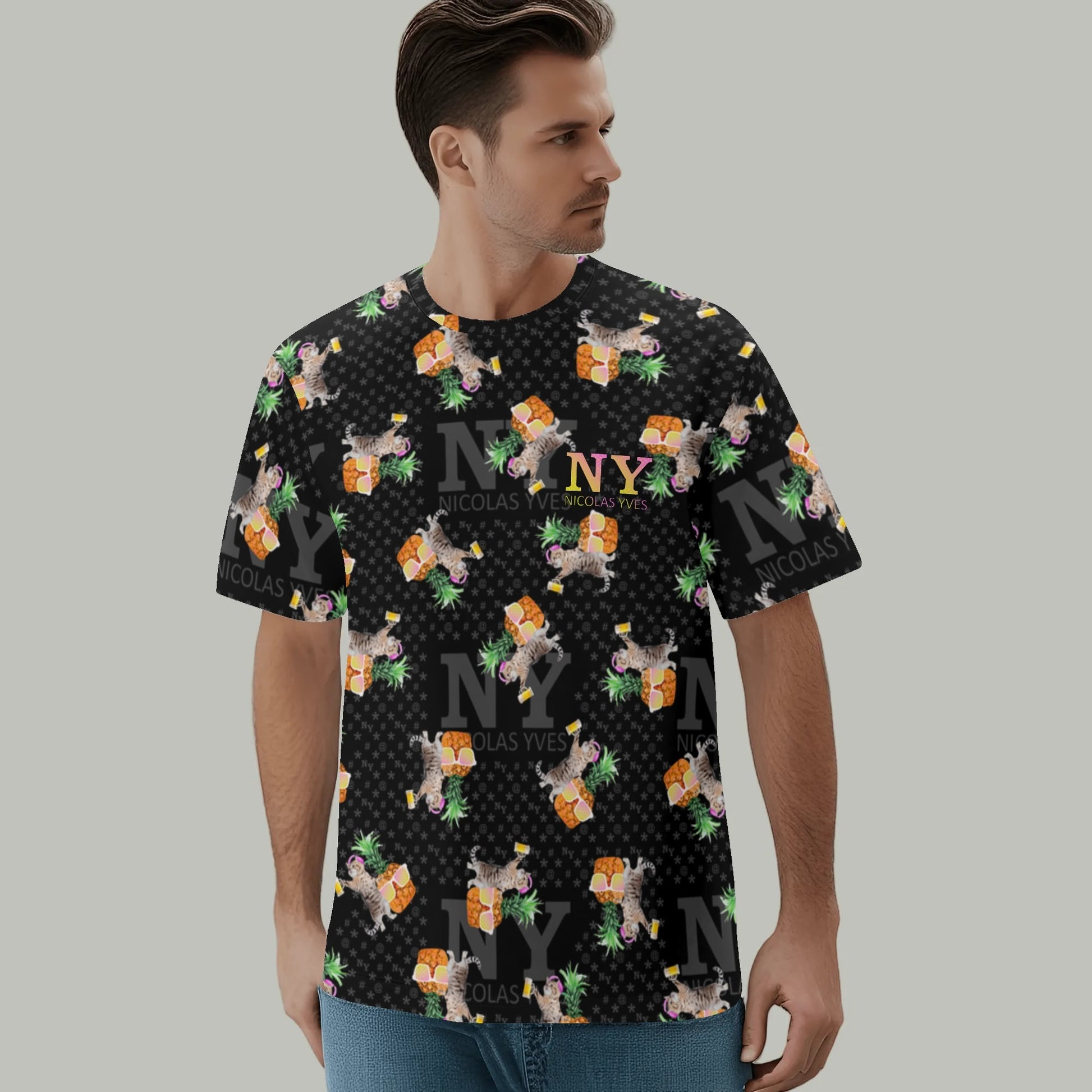 Même si tu ne fais pas la fête tous les jours, avec le T-shirt NY de Nicolas Yves™, tu sais que tu resteras toujours en mode fiesta délirante avec tes chats et tes ananas !